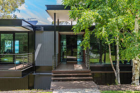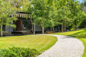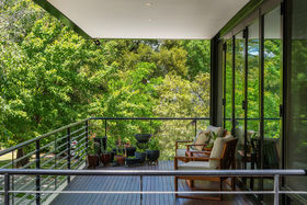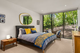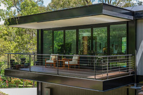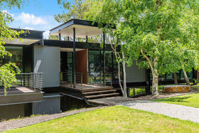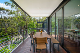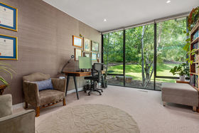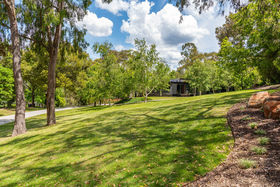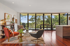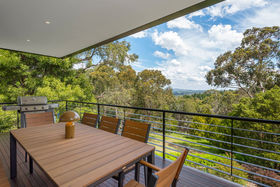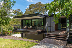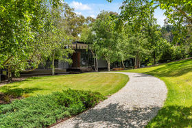 An architectural delight set on the south side of Mount Macedon, featuring a very elegant four-bedroom home, plus study, with amazing views from the floor to ceiling windows. The home is inspired by a James Speyer steel girder design which draws heavily on bringing nature and light into the interior. All rooms have magnificent views to the stunning garden and beyond. The kitchen, dining and living have access to large outdoor decking for entertainment and relaxation.