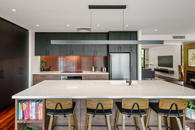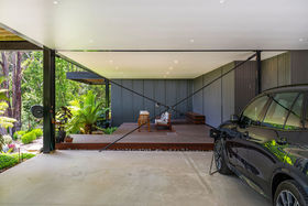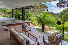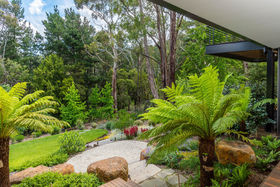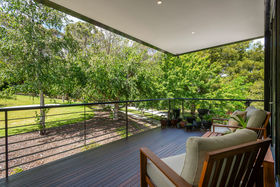 Downstairs features a large laundry and workshop. A two car carport and under house entertainment deck spill out into the garden which features mature English and native trees in a restrained and stylish landscaping design. Other features include 20 solar panels with 5kw inverter and 22k litre water tank. Garden maintenance included.